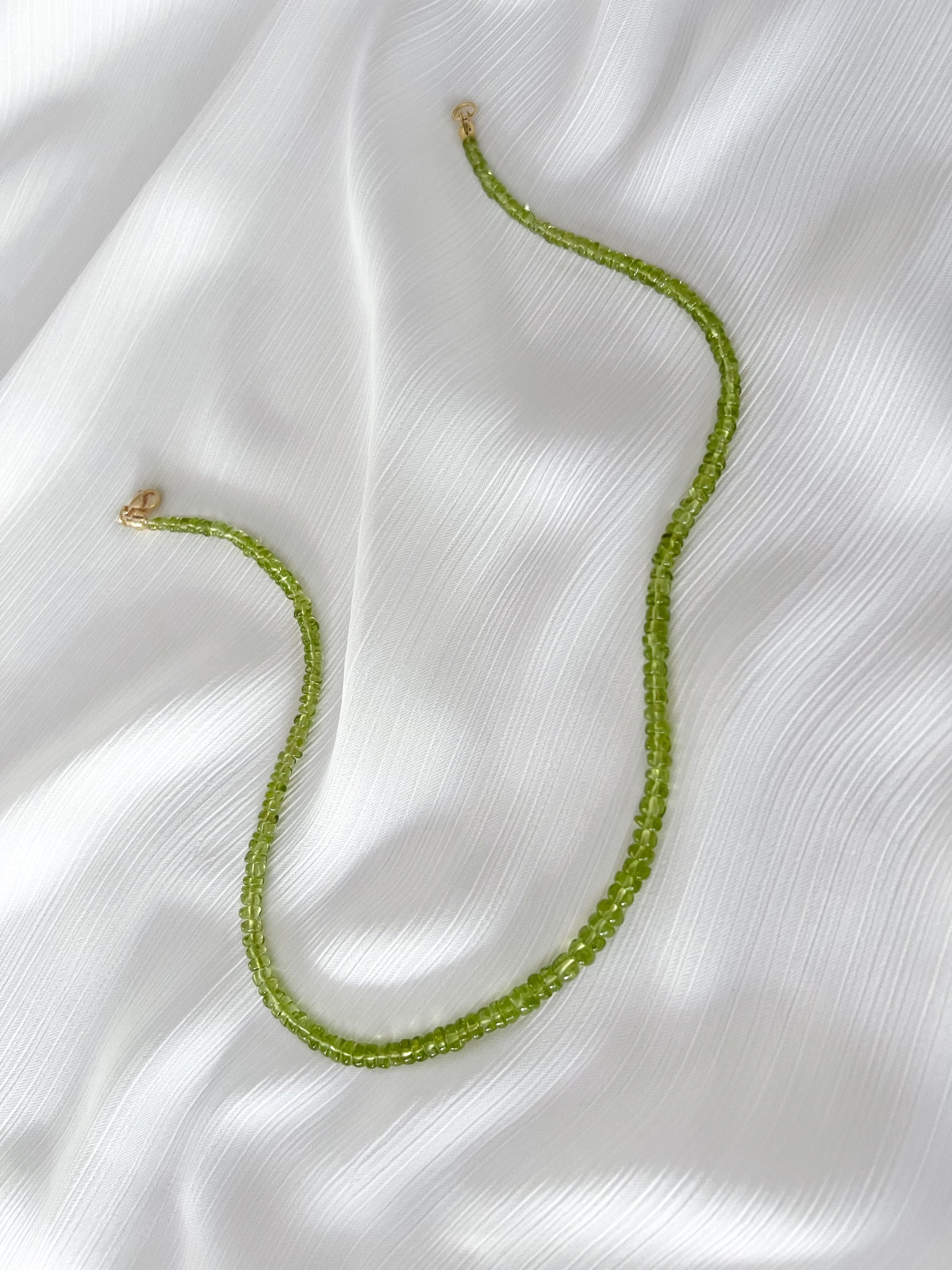 Fresh and luminous — the Peridot Necklace from the Colorfield Collection captures the vibrant essence of summer light. Smooth peridot rondelles are hand-strung and finished with a 14k gold-filled clasp, embodying effortless sophistication. Known as a stone of abundance and vitality, peridot is believed to uplift the spirit and attract positive energy wherever you go.