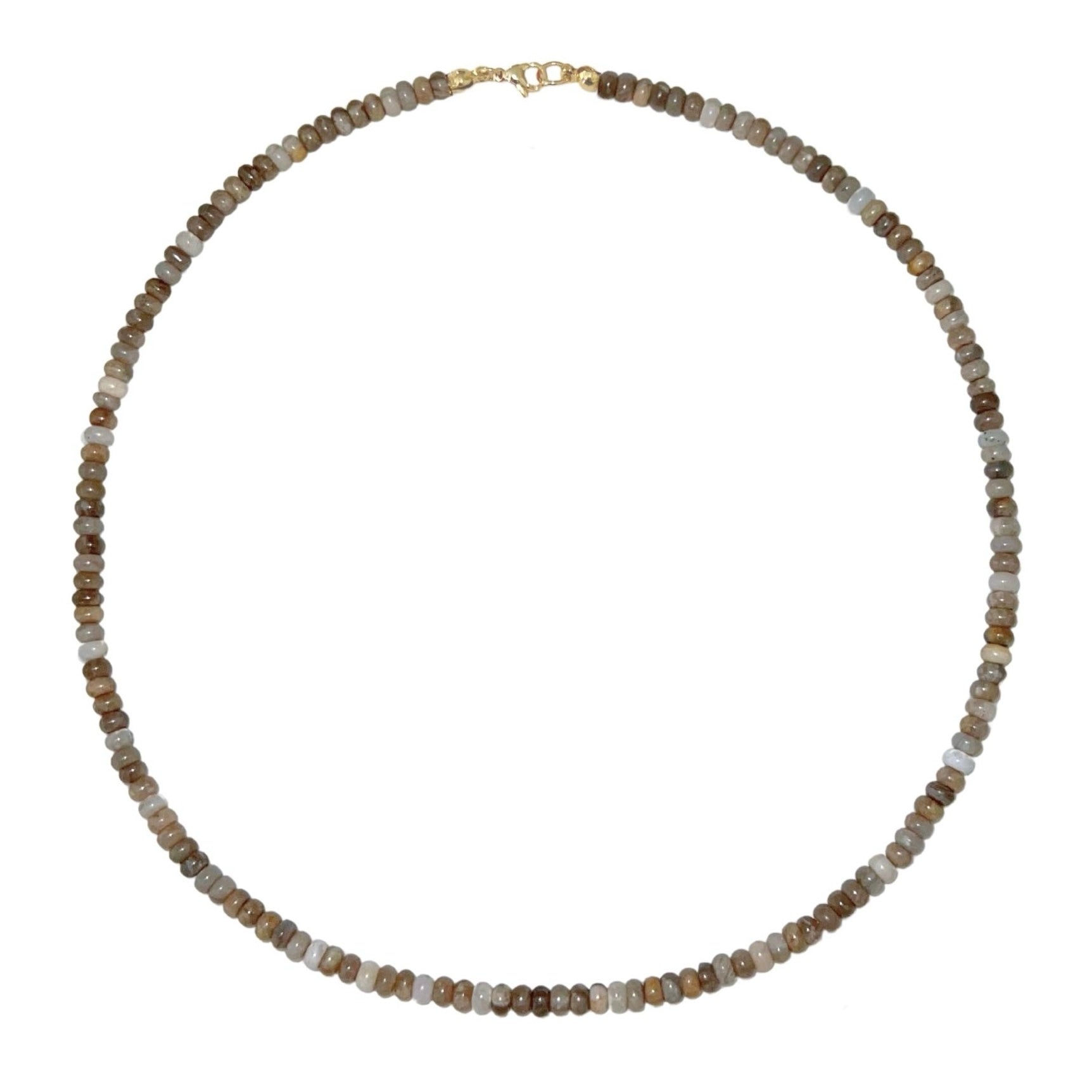 Earthy and refined — the Silver Leaf Jasper Necklace from the Colorfield Collection captures the quiet beauty of nature in soft neutral tones. Dainty smooth rondelles reveal unique marbled patterns in shades of taupe, cream, and stone gray. Hand-strung and finished with a 14k gold-filled clasp, it’s a subtle statement in everyday elegance. Silver leaf jasper is known as a grounding stone, believed to promote balance, stability, and inner peace.